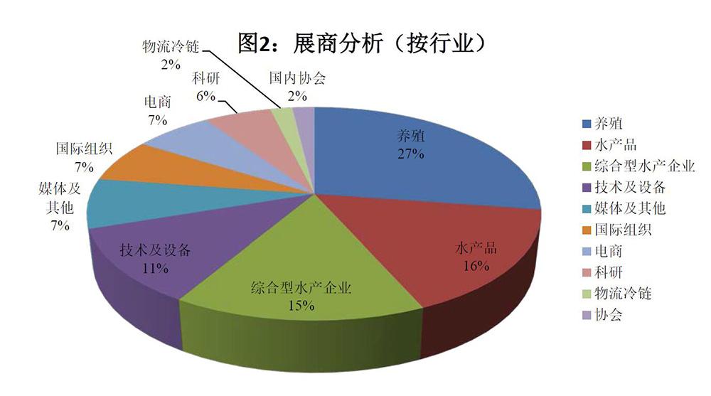 亞太水產展上,三分之二的展商為直接從事水產行業的企業,其中包括:水產養殖企業(27%)、水產品經營企業(16%)、綜合型水產企業(15%)、水產技術及設備企業(11%)等。水產界領軍企業紛紛亮相亞太展,恒興、粵海、利洋、獐子島、大北農、大有恒、青海民澤、山東京魯、大連天正、武漢高龍、江蘇沿海、江蘇華大等龍頭企業繼續在亞太展上展示最新成果、宣傳企業品牌、維護老客戶、結識新朋友。這些龍頭企業在發展模式上,覆蓋水產養殖的不同領域,戰略上實現了“綜合化、集團化”的發展模式,真正實現了從漁場到餐桌的全產業鏈發展,從另一個側面反映了中國水產企業在轉型升級中的積極探索。該類企業占展商數量的15%,但展示面積超過30%。